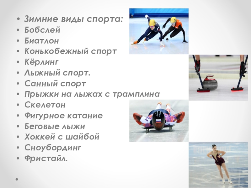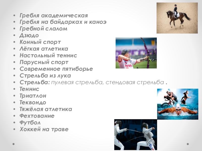 дисциплина) и 7 зимних (15 дисциплин) видов спорта.