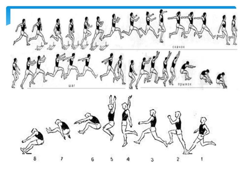 Заканчивая отталкивание, прыгун полностью разгибает толчковую ногу.Фазы прыжка:отталкивание