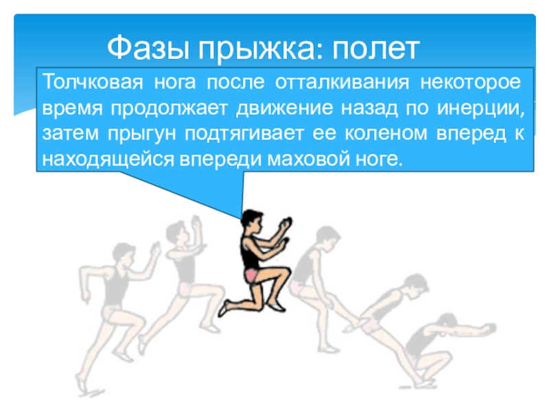 Слайд 11Толчковая нога после отталкивания некоторое время продолжает движение назад по инерции,