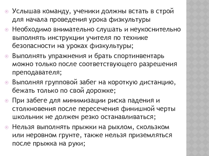 Слайд 4Вводные положения техники безопасности на уроках физкультуры
