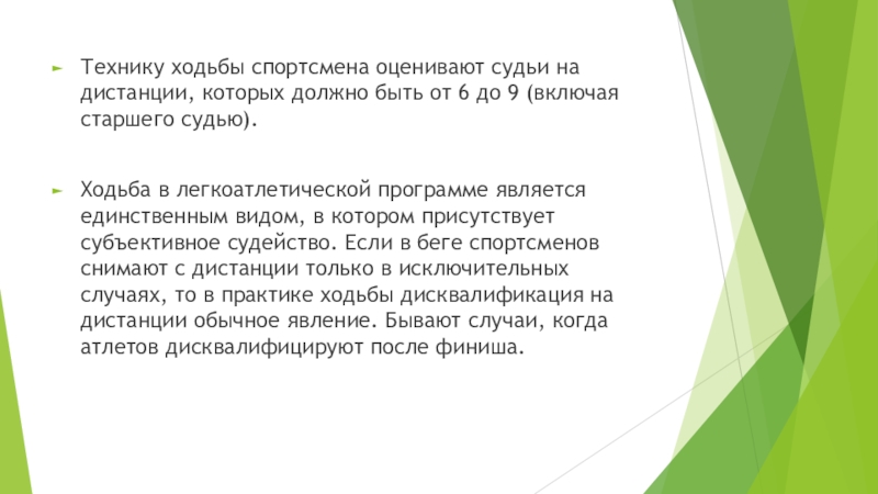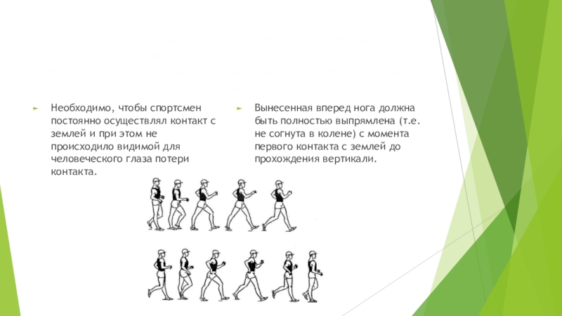 Необходимо, чтобы спортсмен постоянно осуществлял контакт с землей и при этом не происходило видимой для человеческого глаза потери контакта.