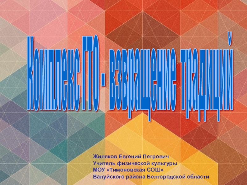 Комплекс ГТО - взвращение традиций Жиляков Евгений Петрович Учитель физической культуры МОУ «Тимоновская СОШ» Валуйского района Белгородской