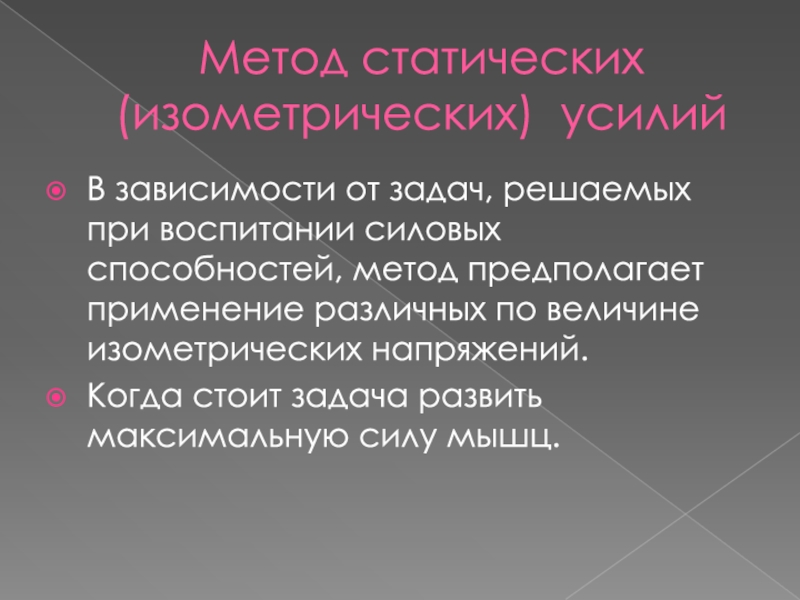 способностей, метод предполагает применение различных по величине изометрических напряжений.