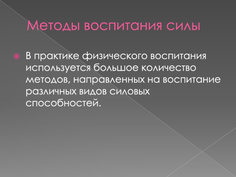 изометрического и динамического. Для воспитания силовых способностей применяют 2-6 секундных изометрические упражнения с усилием в 80-90% от максимума с последующей динамической работой.