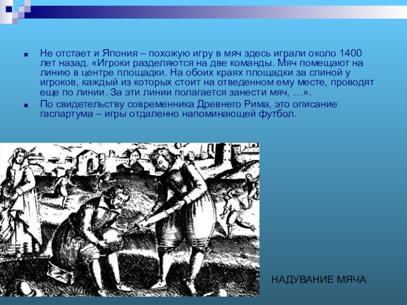 Этот старинный рисунок свидетельствует что уже в XVI в существовала игра похожая на современный футбол в которую играли на ограниченном пространстве