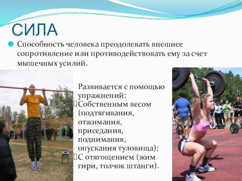 С отягощением (жим гири, толчок штанги).
