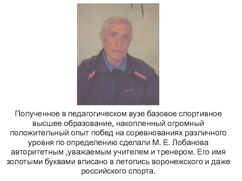 Презентация, доклад по физической культуре на тему: Учитель с большой буквы (памяти заслуженного учителя России Лобанова М.Е.)