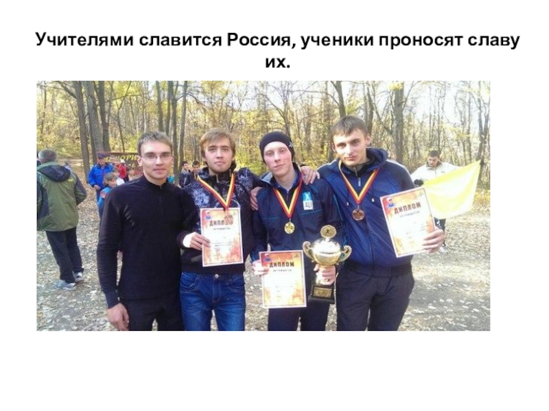 Слайд 10Учителями славится Россия, ученики проносят славу их.