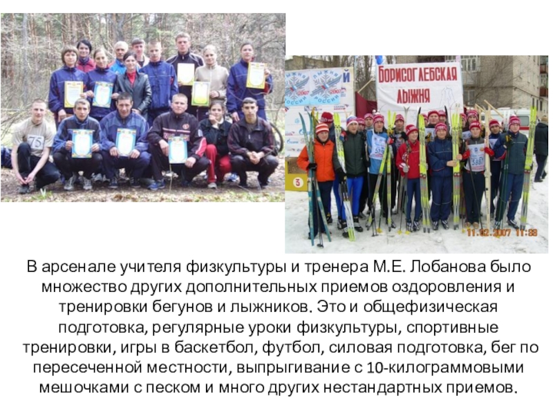 Слайд 6В арсенале учителя физкультуры и тренера М.Е. Лобанова было множество других