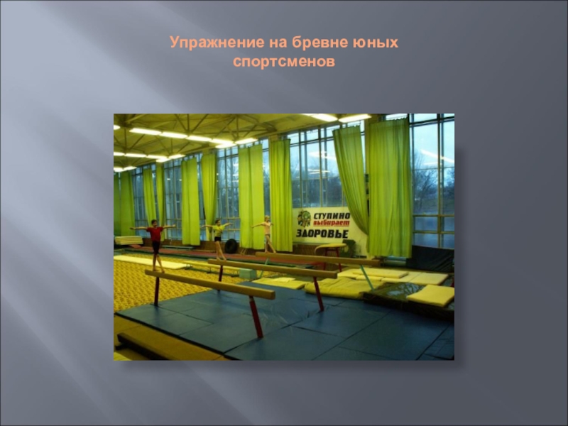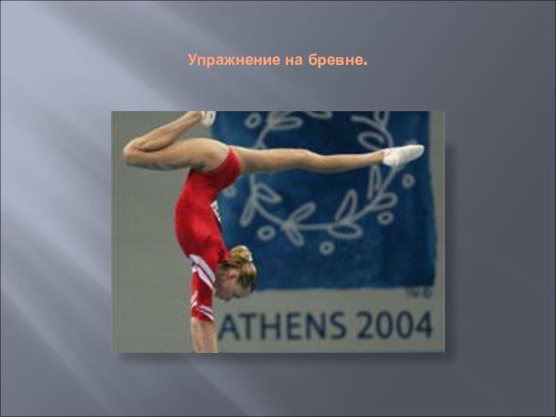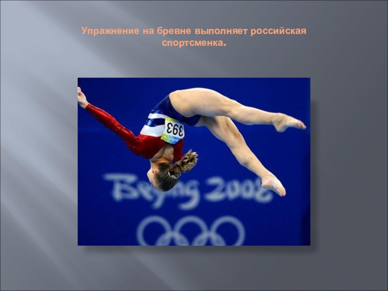 Слайд 15Упражнение на бревне выполняет российская спортсменка.