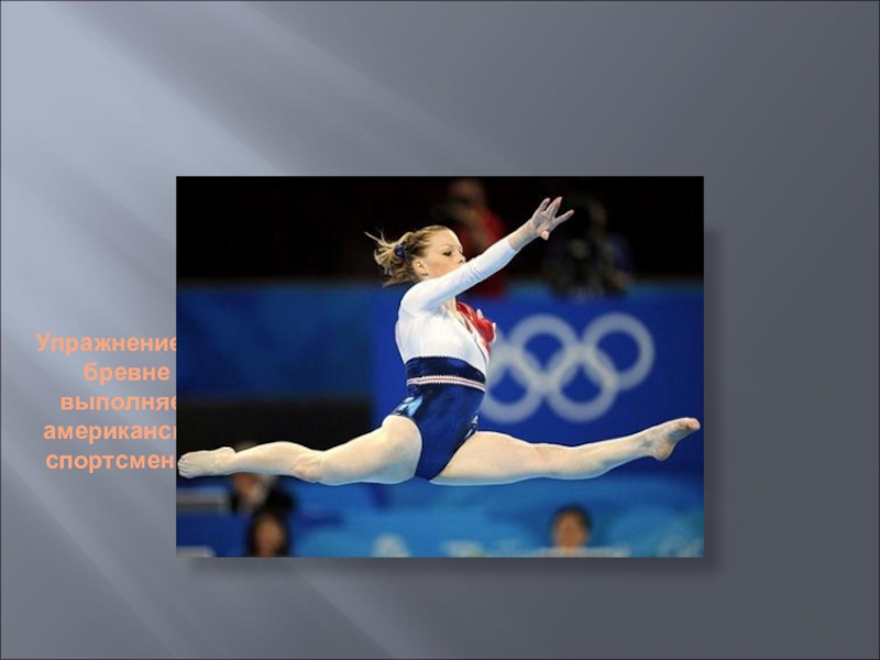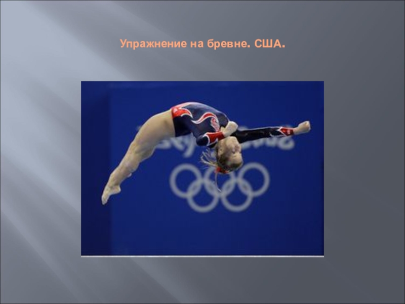 Слайд 16Упражнение на бревне выполняет американская спортсменка.
