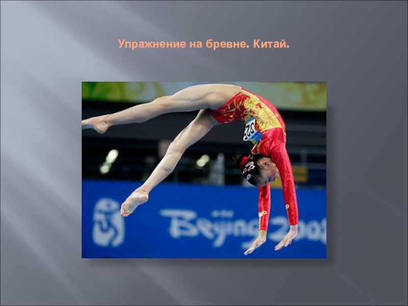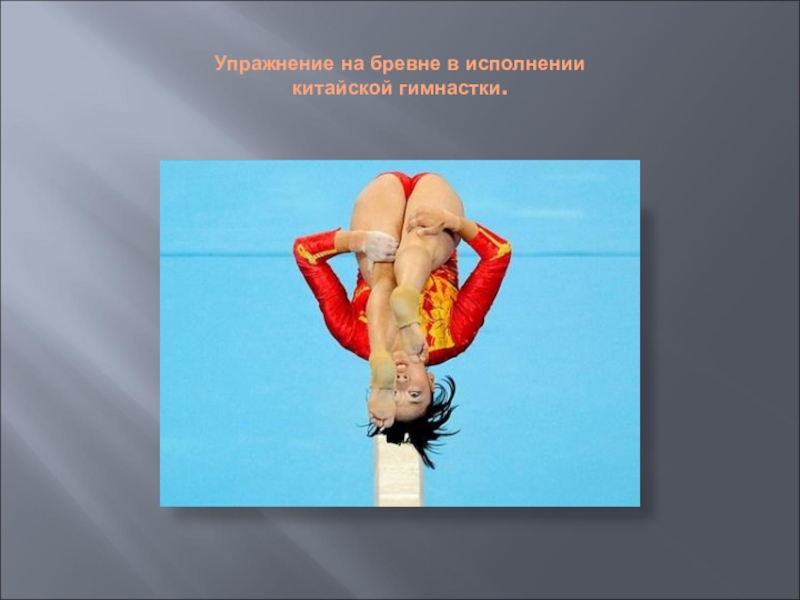 Слайд 14Упражнение на бревне в исполнении китайской гимнастки.
