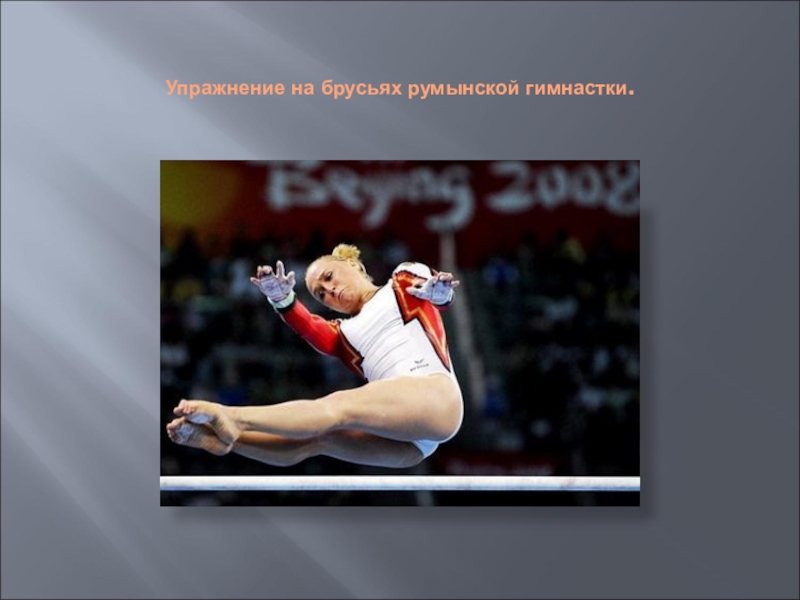 Слайд 10Упражнение на брусьях румынской гимнастки.