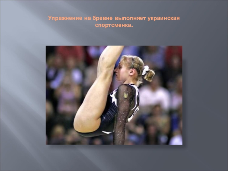 Слайд 18Упражнение на бревне выполняет украинская спортсменка.