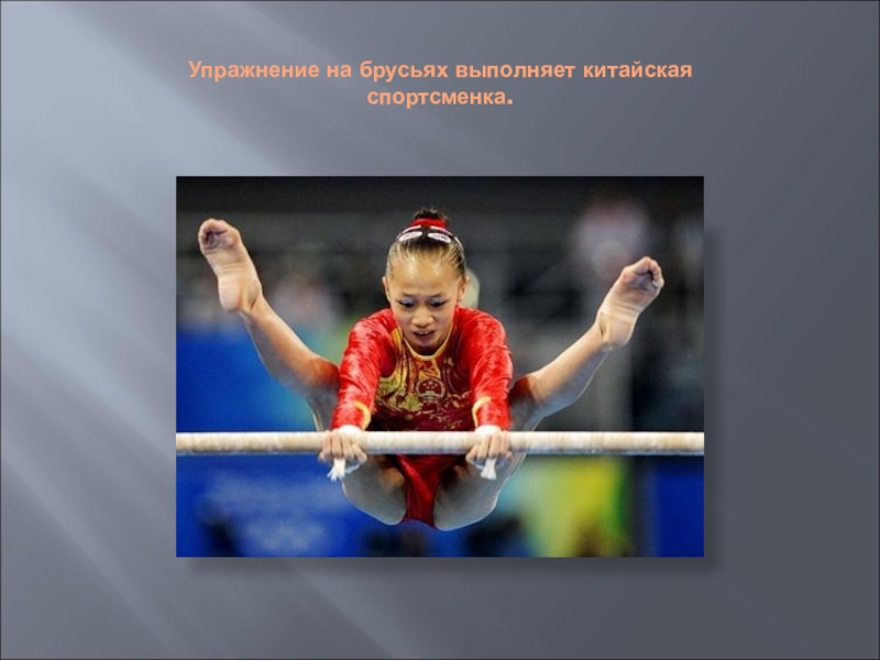 Слайд 11Упражнение на брусьях выполняет китайская спортсменка.