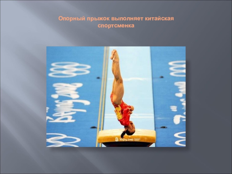 Слайд 13Опорный прыжок выполняет китайская спортсменка