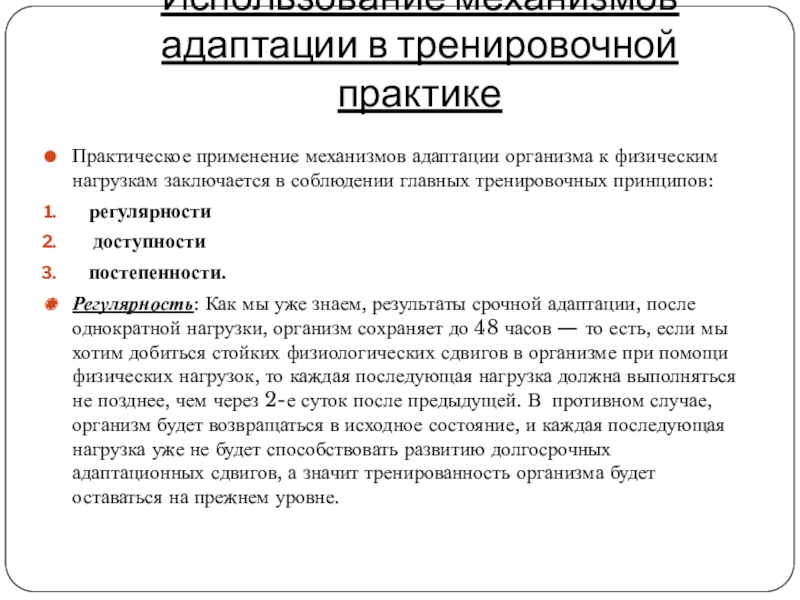Слайд 5Использование механизмов адаптации в тренировочной практике