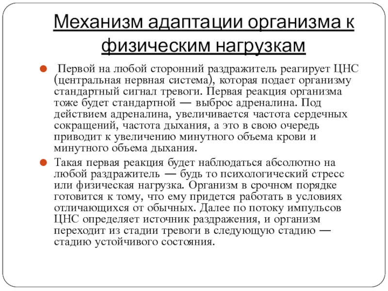 Слайд 3Механизм адаптации организма к физическим нагрузкам