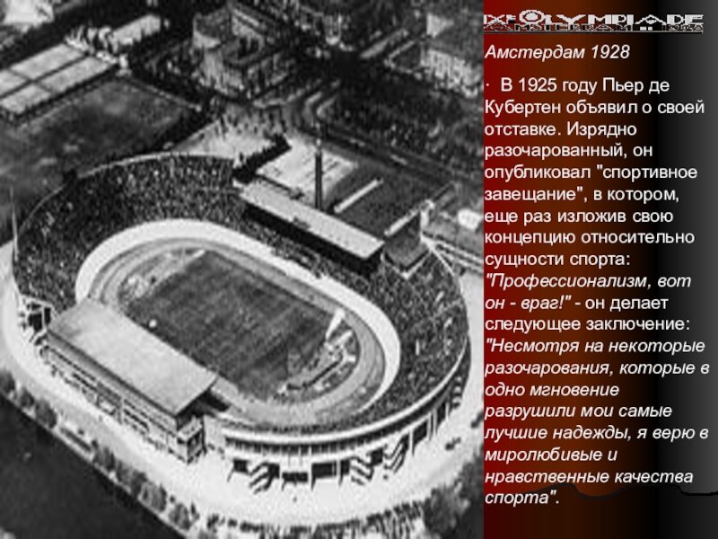 · В 1925 году Пьер де Кубертен объявил о