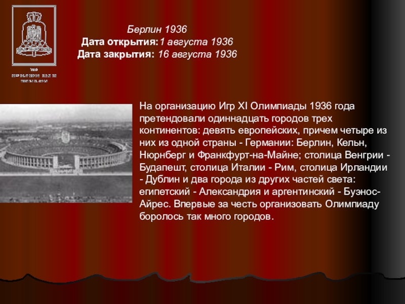 Слайд 12Берлин 1936