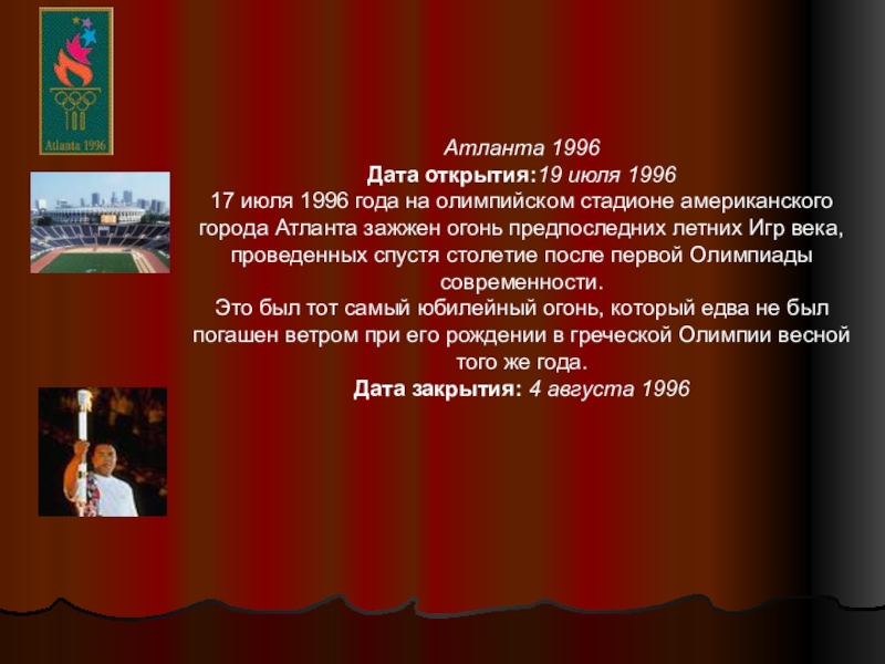 Слайд 23Атланта 1996