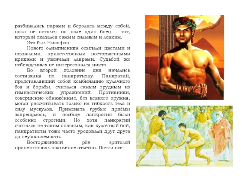 Слайд 5разбивались парами и боролись между собой, пока не остался на поле