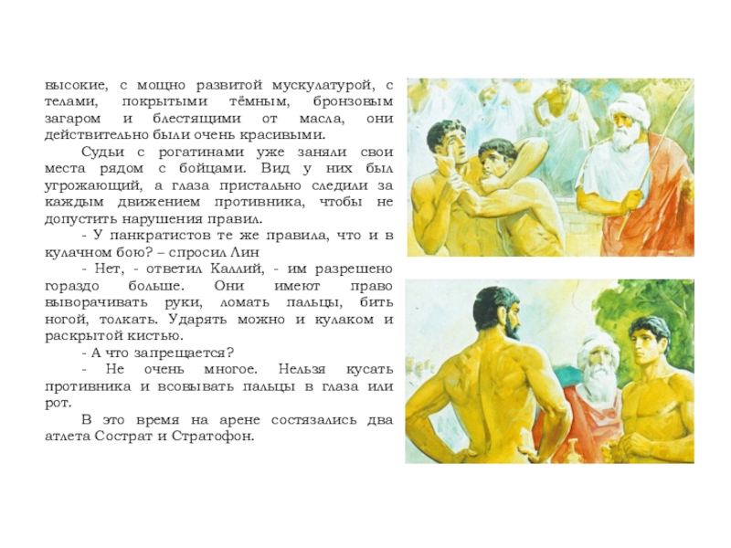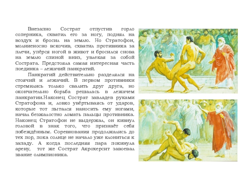 Слайд 7Внезапно Сострат отпустив горло соперника, схватил его за ногу, поднял на