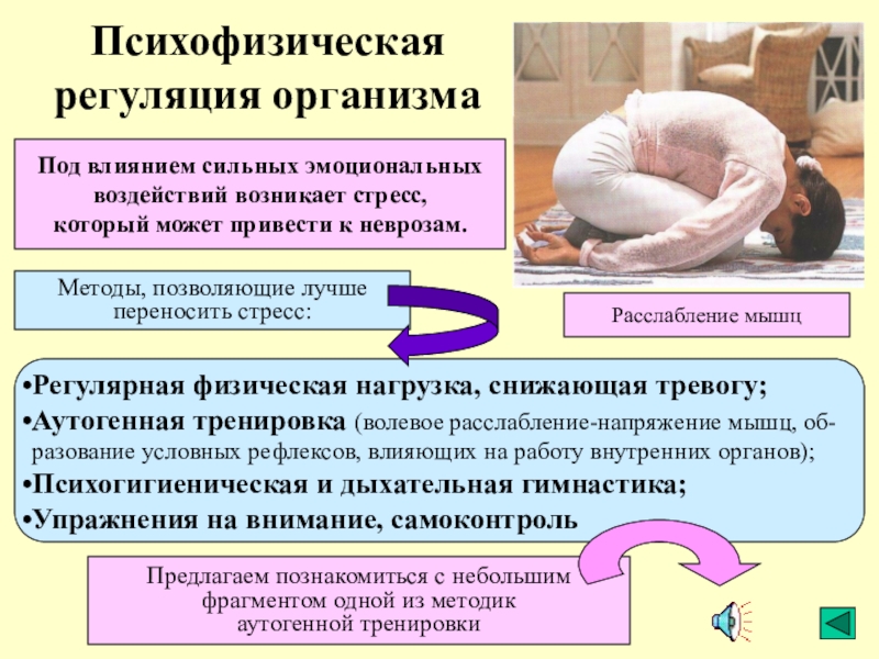 Аутогенная тренировка (волевое расслабление-напряжение мышц, об-