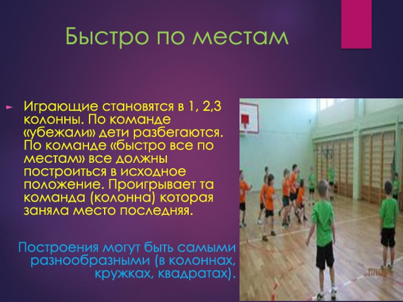 Основная часть состоит из игр. Содержание основной части должно быть разнообразным: подвижные игры, игры-эстафеты, спортивные упражнения, элементы спортивных игр, самостоятельные игры детей.