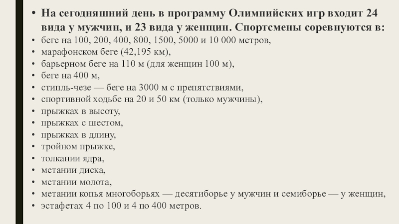 Слайд 9На сегодняшний день в программу Олимпийских игр входит 24 вида у