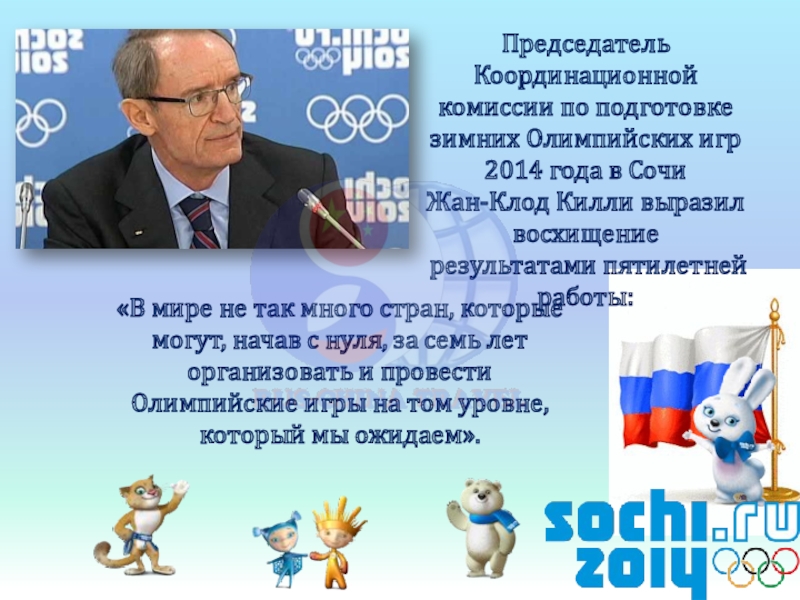 «В мире не так много стран, которые могут, начав с нуля, за семь лет организовать и провести Олимпийские игры на том уровне, который мы ожидаем».