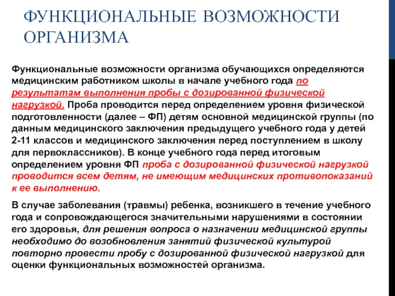 Слайд 5ФУНКЦИОНАЛЬНЫЕ ВОЗМОЖНОСТИ ОРГАНИЗМА