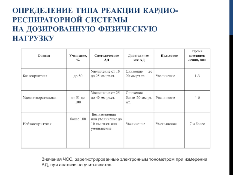 Слайд 18ОПРЕДЕЛЕНИЕ ТИПА РЕАКЦИИ КАРДИО-РЕСПИРАТОРНОЙ СИСТЕМЫ