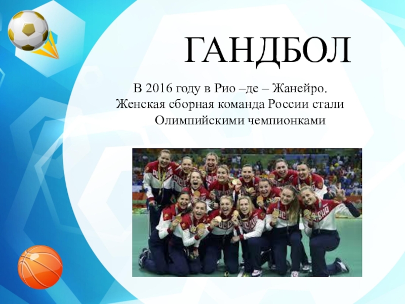 ГАНДБОЛВ 2016 году в Рио –де – Жанейро. Женская сборная команда России стали Олимпийскими чемпионками