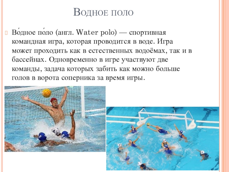 Во́дное по́ло (англ. Water polo) — спортивная командная игра, которая