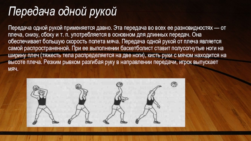 Передача одной рукойПередача одной рукой применяется давно. Эта передача во всех ее разновидностях — от плеча, снизу,