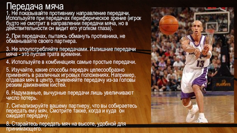 Передача мяча 1. Не показывайте противнику направление передачи. Используйте при передачах периферическое зрение (игрок будто не смотрит