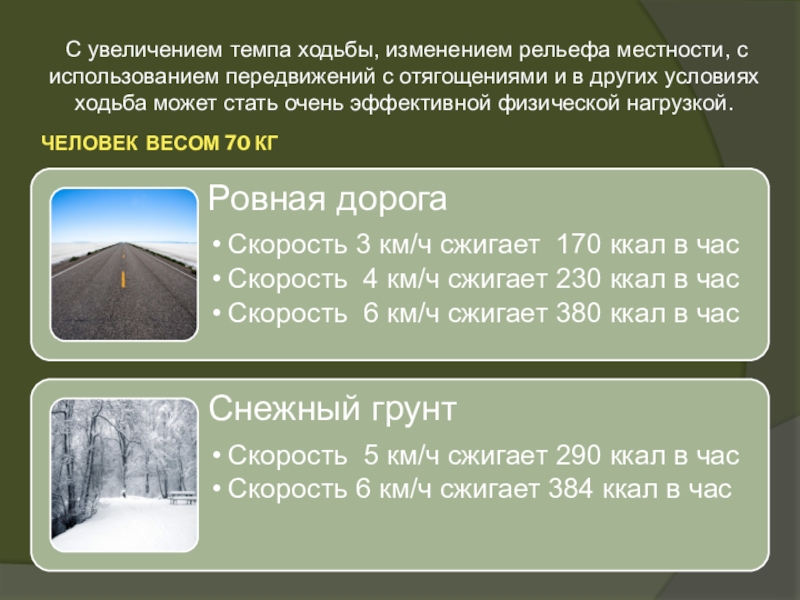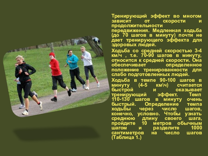 Разные люди по-разному будут реагировать на одну и ту же физическую нагрузку. Для здорового человека с высокой двигательной активностью пройти 5 км в час будет легко, а для другого – физически слабого – ходьба с такой скоростью будет очень ощутимой.