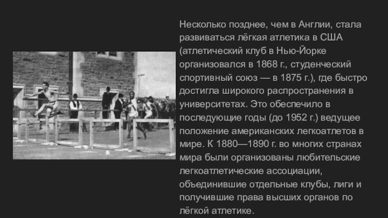 Слайд 9Несколько позднее, чем в Англии, стала развиваться лёгкая атлетика в США