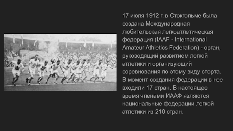 Слайд 1117 июля 1912 г. в Стокгольме была создана Международная любительская легкоатлетическая
