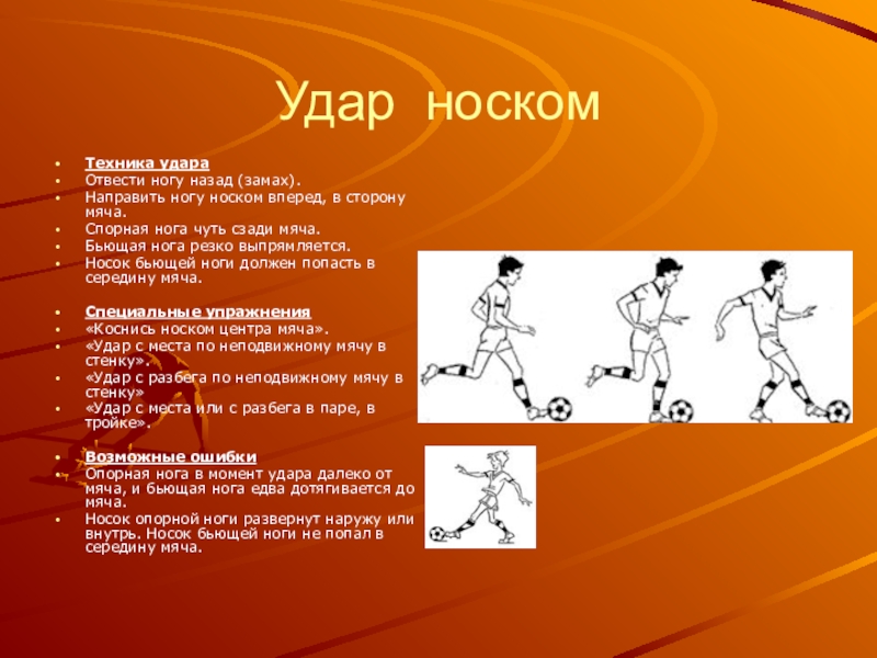 Носок бьющей ноги в момент удара не должен быть повернут внутрь (к опорной ноге).