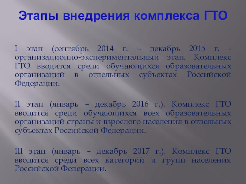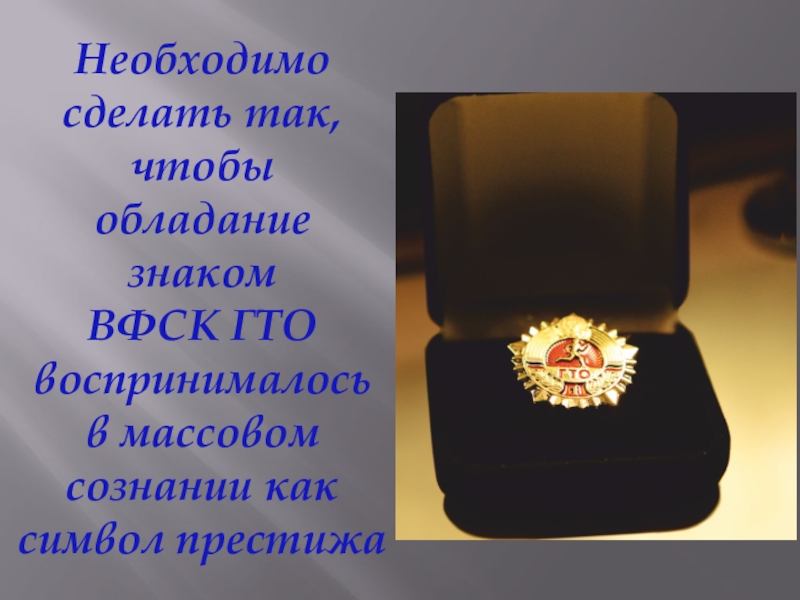 Цель ВФСК ГТО: повышение эффективности использования физической культуры в социально-экономическом развитии страны, укреплении здоровья, улучшении благосостояния и качества жизни, гармоничном развитии личности, формировании потребности в физическом самосовершенствовании, здорового образа жизни Задачи ВФСК ГТО: