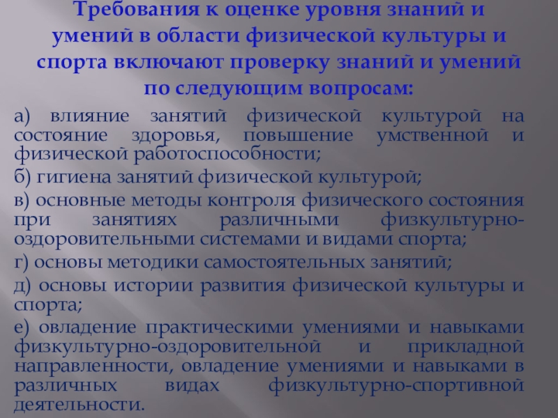 а) влияние занятий физической культурой на состояние здоровья, повышение умственной и физической работоспособности;