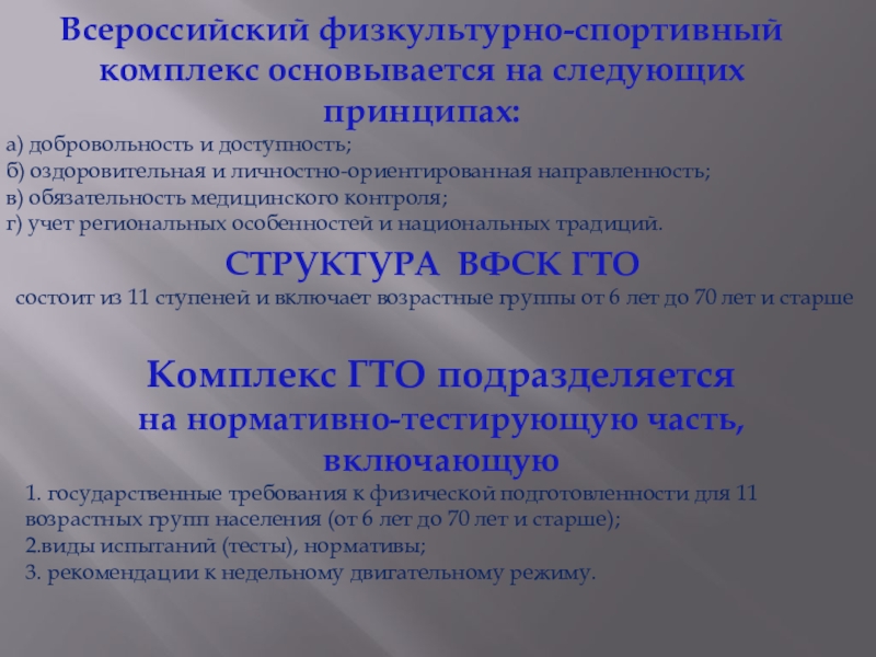 состоит из 11 ступеней и включает возрастные группы от 6 лет до 70 лет и старше