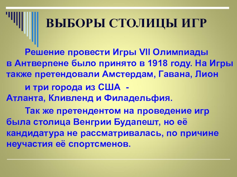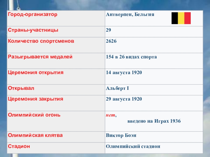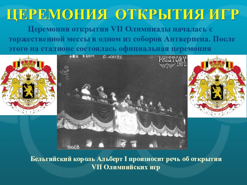Слайд 1VII ОЛИМПИЙСКИЕ ИГРЫ АНТВЕРПЕН (БЕЛЬГИЯ) 1920 г.