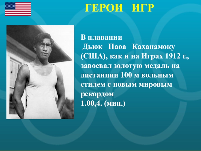 и на Играх 1912 г., завоевал золотую медаль на дистанции 100 м вольным стилем с новым мировым рекордом