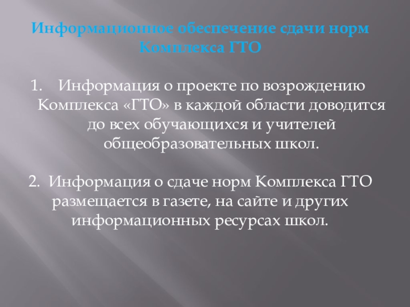 Слайд 38Информационное обеспечение сдачи норм Комплекса ГТО
