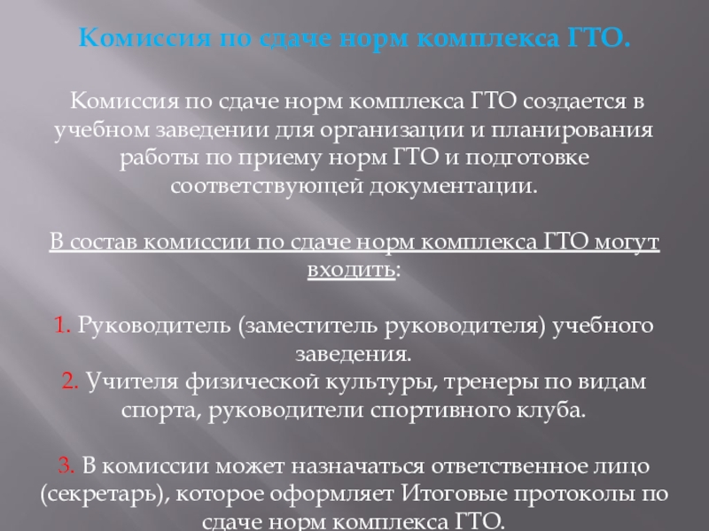 В состав комиссии по сдаче норм комплекса ГТО могут входить: