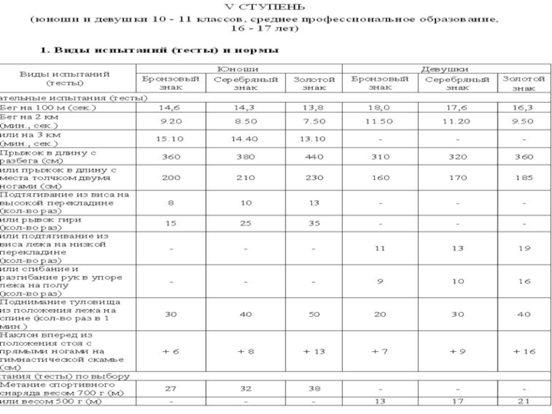 V ступень: 10 - 11 классы, среднее профессиональное образование