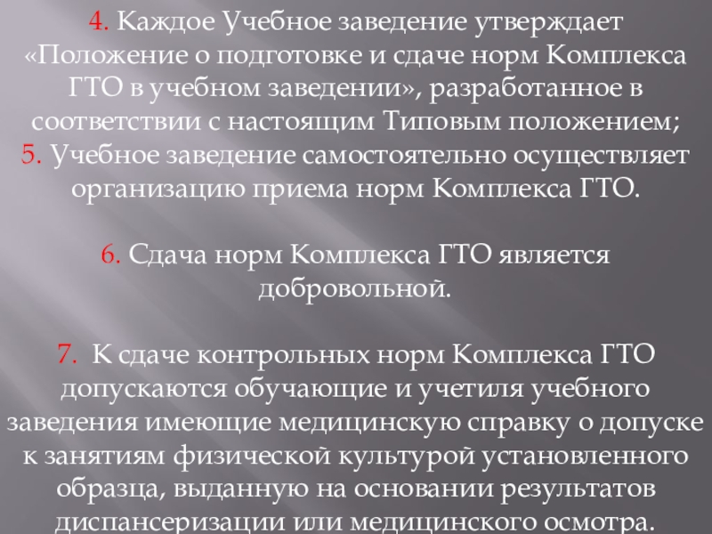 Слайд 364. Каждое Учебное заведение утверждает «Положение о подготовке и сдаче норм